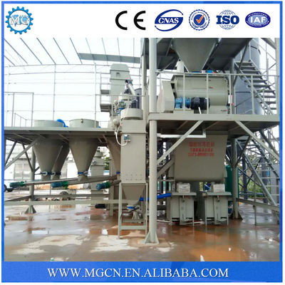 MG series dry mortar production line is based on the latest design concept in Europe, this production adopts the advanced computer auto-control system, whose production capacity can reach 30-100 thousand tons per year depend on the system configuration. The production line consists of storage system, metering and batching system, conveying system, mixing system, air compressor system , packaging system, and dedusting system, etc